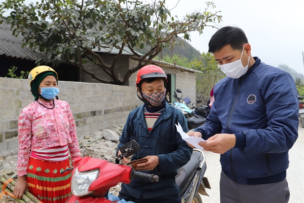 Cán bộ xã Sủng Trà đến thôn Há Phóng Cáy tuyên truyền, vận động bà con đến Trạm y tế tham gia tiêm chủng