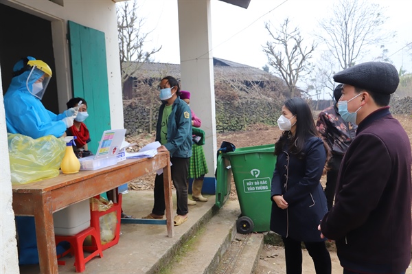 Anh Nông Văn Ngay, Chủ tịch UBND xã Giàng Chu Phìn kiểm tra lịch sử tiêm chủng của đồng bào trong ngày bà con tham gia chợ phiên