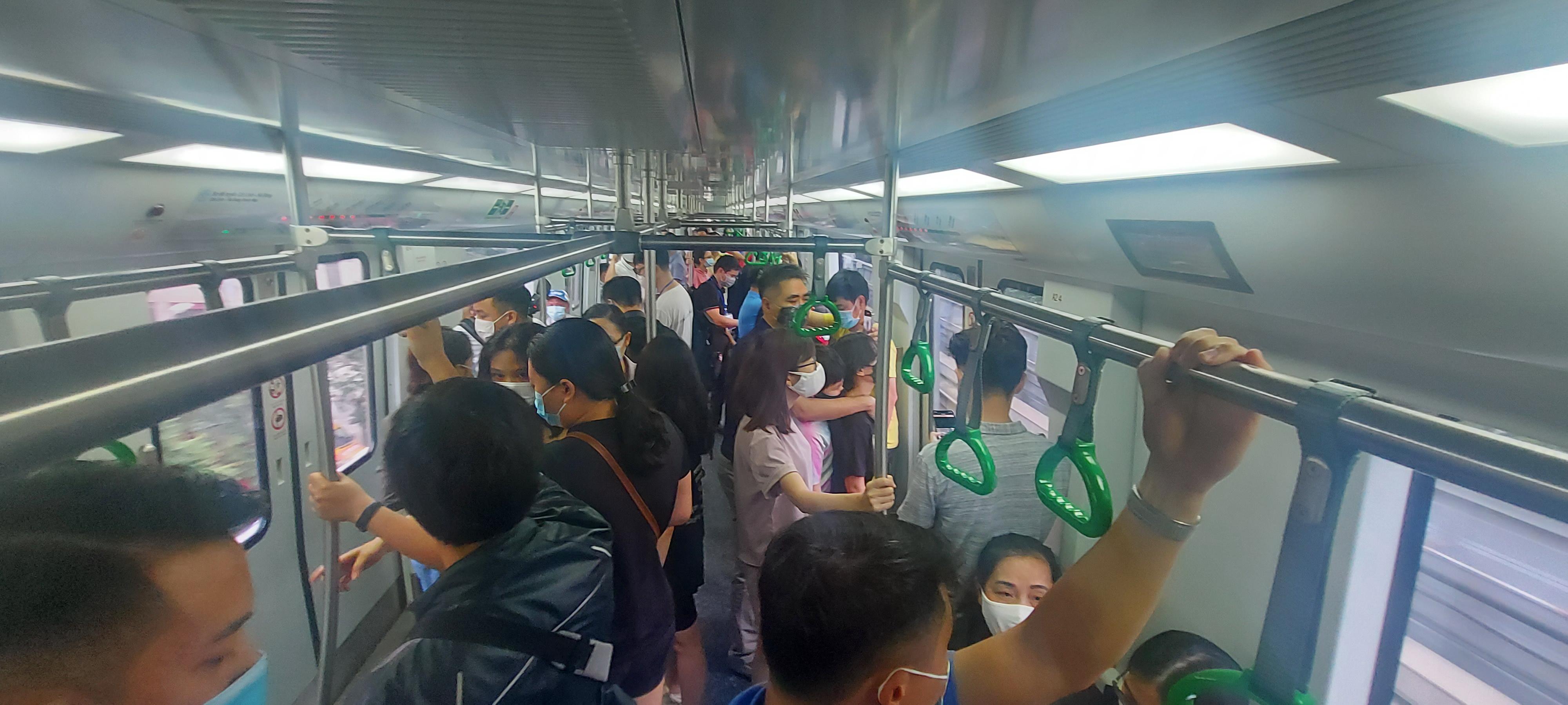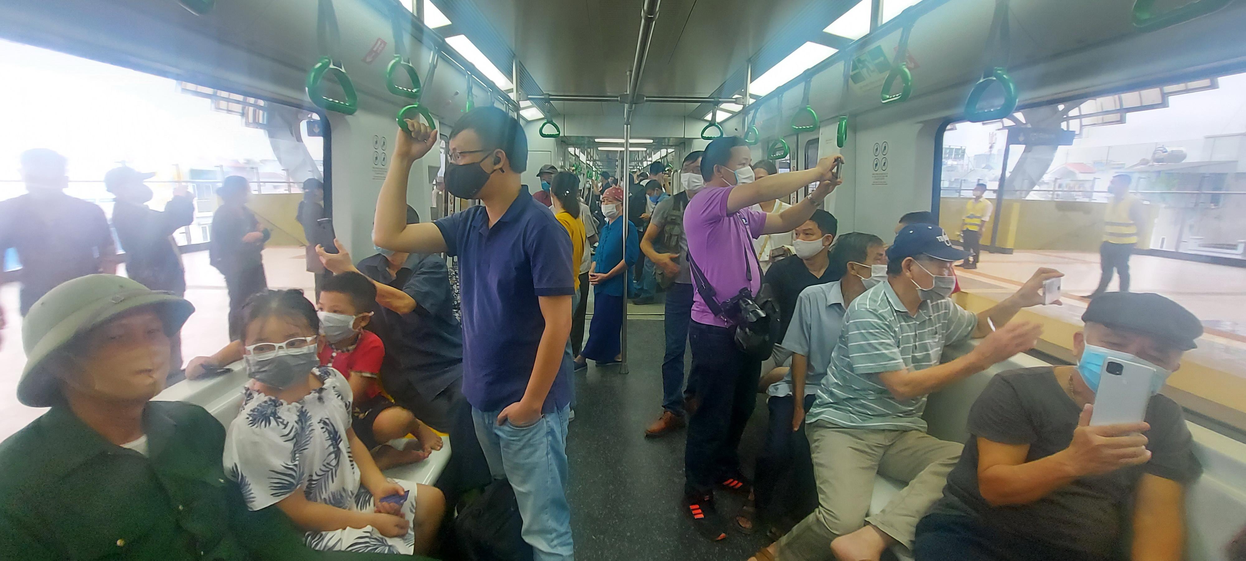 Bên trong chuyến tàu, lượng khách đông đúc. Ngày đầu tiên vận hành thương mại mà "đắt khách" như thế này, sẽ báo hiệu thành công cho những chuyến tiếp theo. Theo một đại diện của Metro Hà Nội cho biết, có thể chiều, tối nay và ngày mai, người dân Hà Nội sẽ đến đông hơn để trải nghiệm tuyến đường sắt đô thị này.