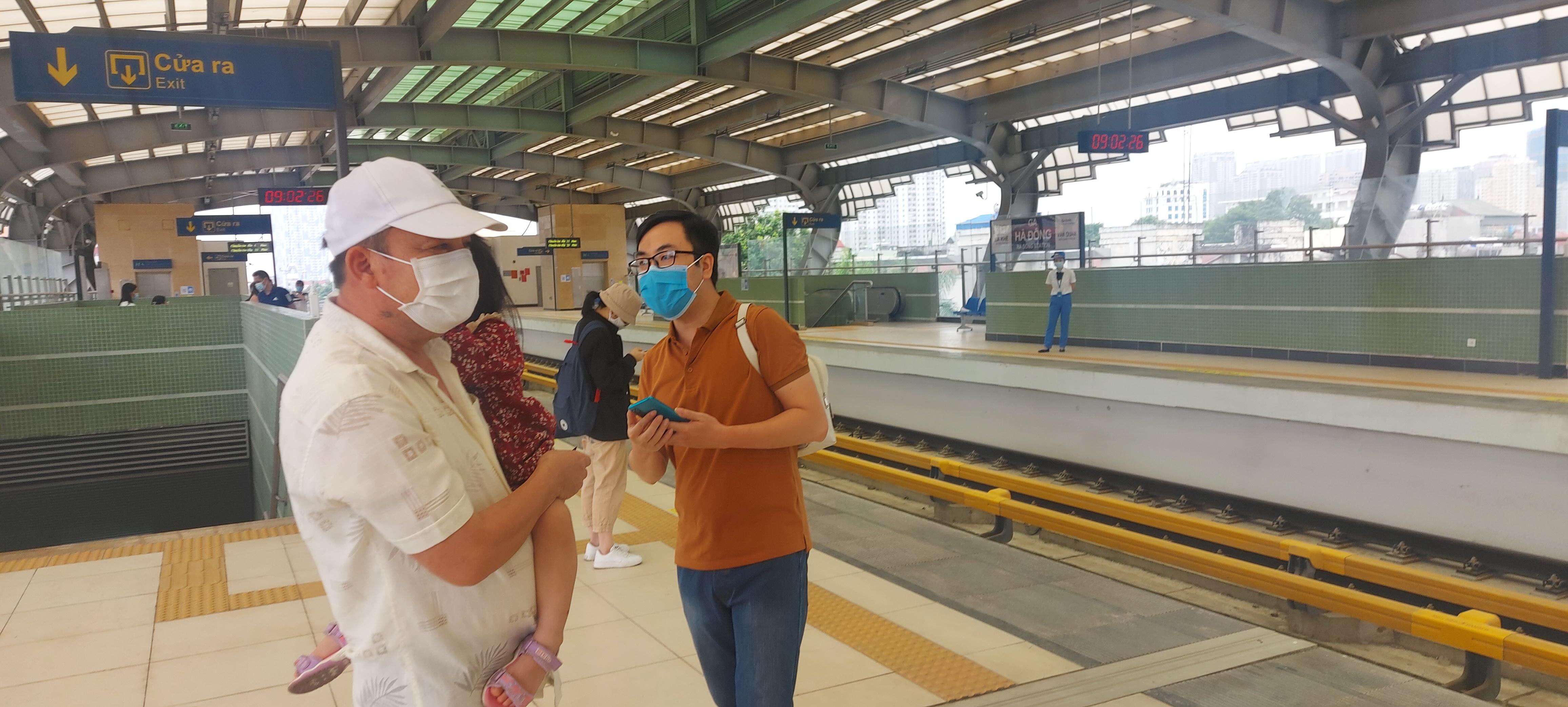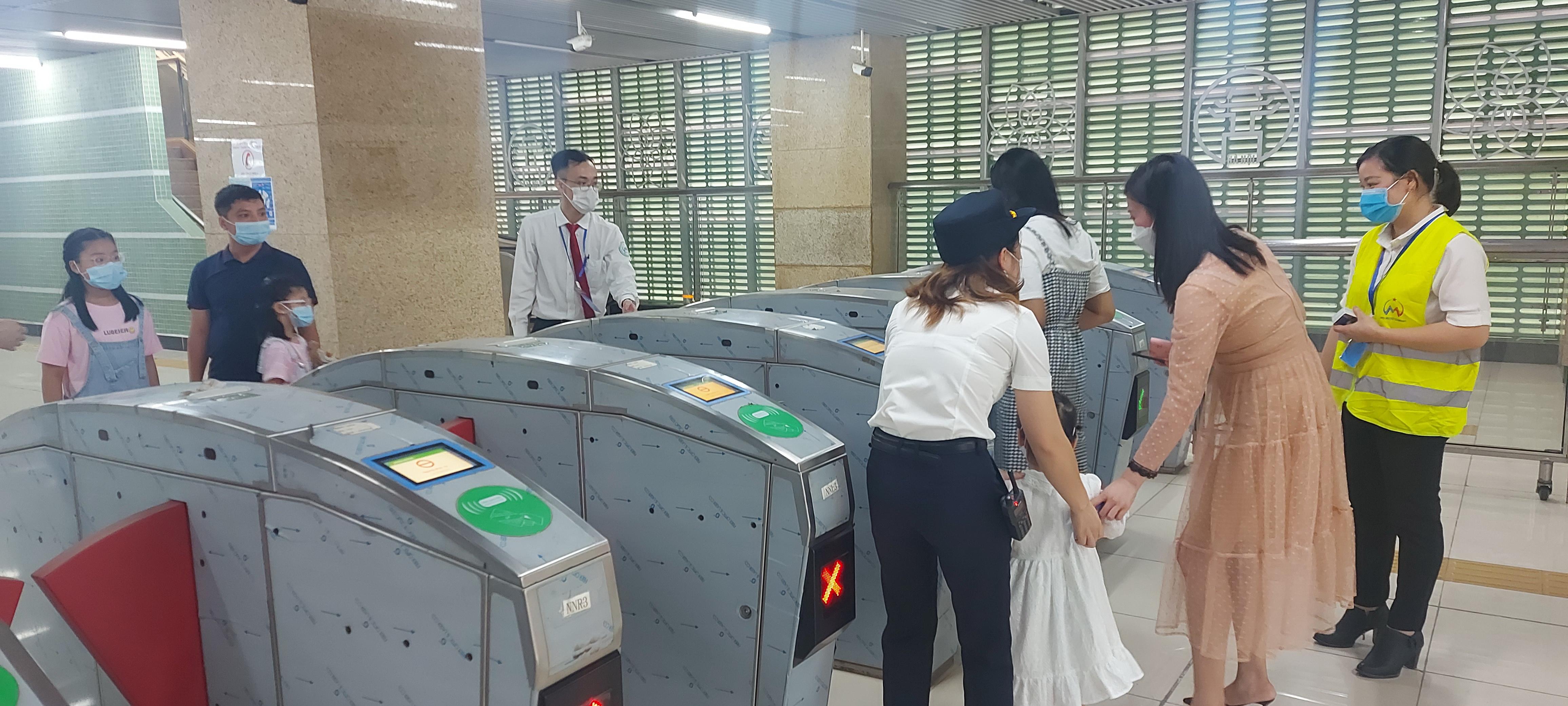 Sáng sớm nay, tại phía đầu Hà Đông, nhiều người đã háo hức đưa cả gia đình đi trải nghiệm tuyến đường sắt đô thị này. Mỗi người được phát một thẻ nhựa để đi tàu miễn phí. Tại các cửa kiểm soát, khách đi tàu được nhân viên hướng dẫn rất tận tình, chu đáo
