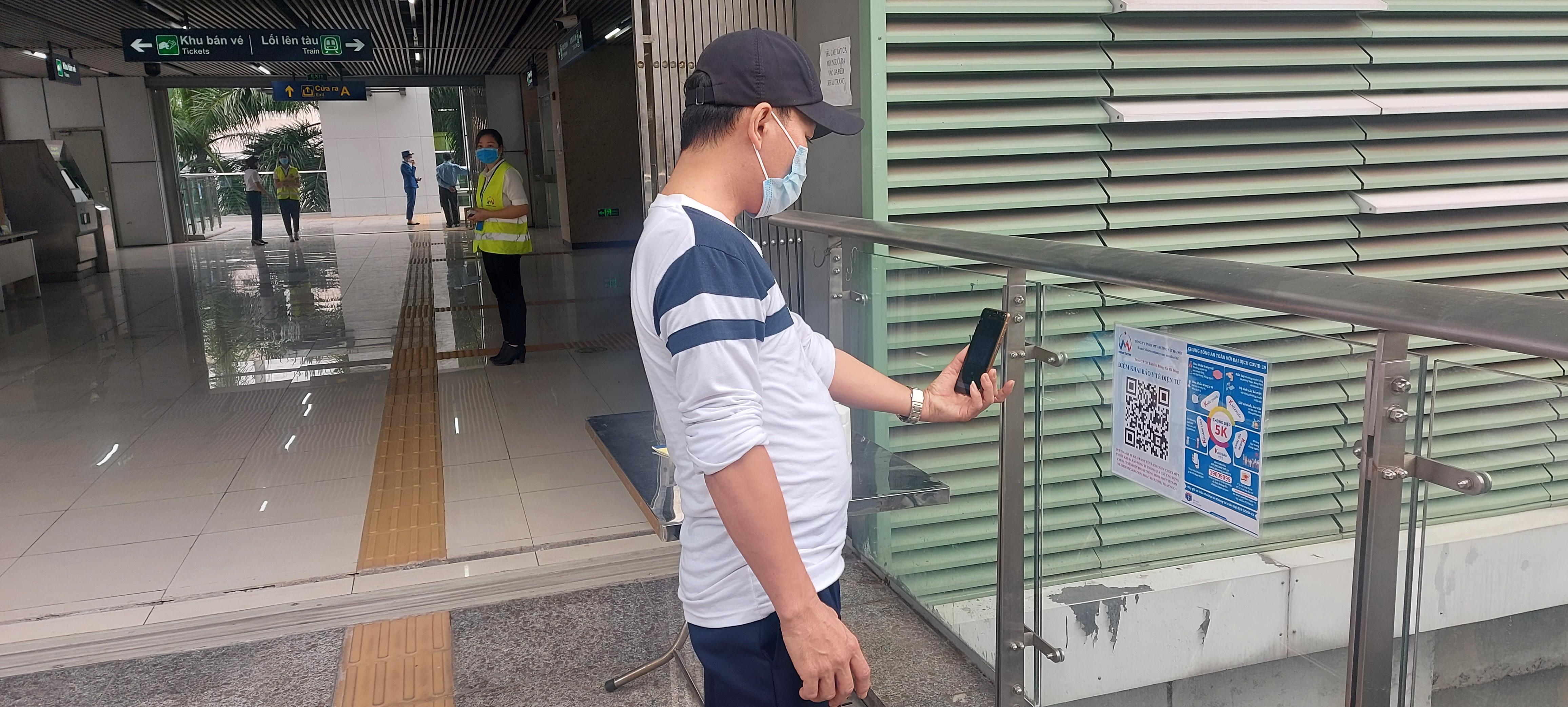 Ngay tại cửa ra vào ga và cả bên trong ga đều có các điểm quét mã QR khai báo y tế. Việc khai báo y tế thuận tiện cũng chỉ mất khoảng 30 giây cho mỗi người khi vào trong ga để đi tàu
