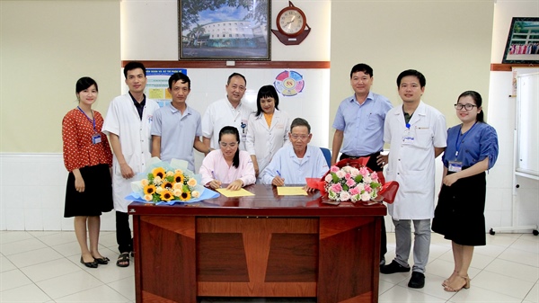 Hai bệnh nhân Võ C. và Nguyễn Thị Ng. điền thông tin đăng ký hiến tạng nhằm tri ân người hiến giác mạc