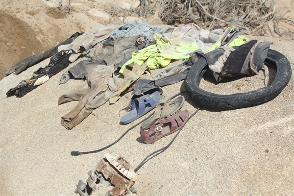 Các vật dùng cá nhân của công nhân được tìm thấy tại bãi bồi số 01 ngã 3 Tam Dần. Ảnh: Quang Đạo