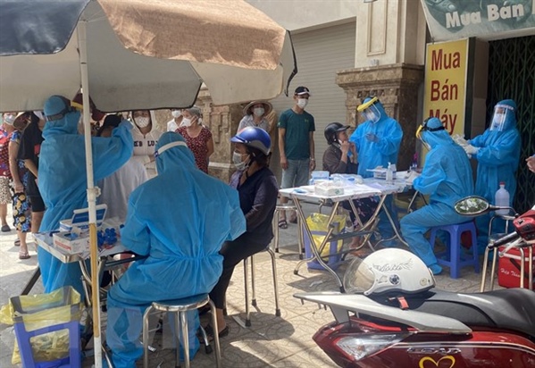 Người dân Phường 11, Thành phố Vũng Tàu xét nghiệm tại điểm trường Tiểu học Thắng Nhất. Ảnh: TTXVN