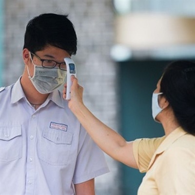 Thí sinh được đo nhiệt độ trước khi vào trường thi