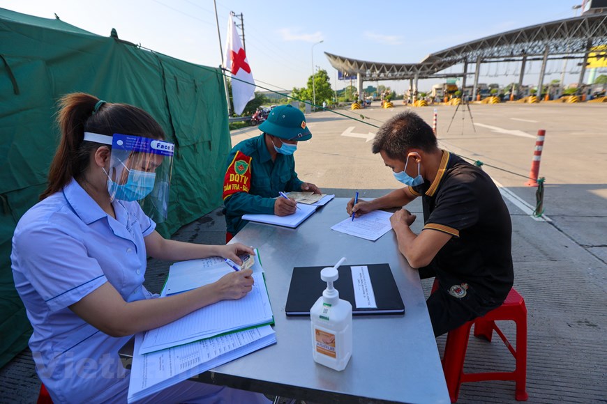 Người dân thực hiện khai báo y tế tại các cửa ngõ Thủ đô