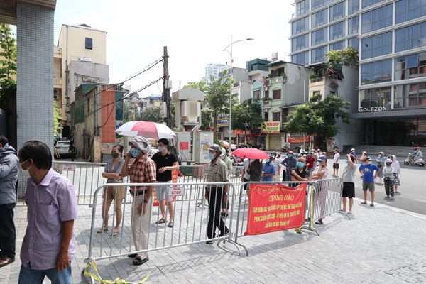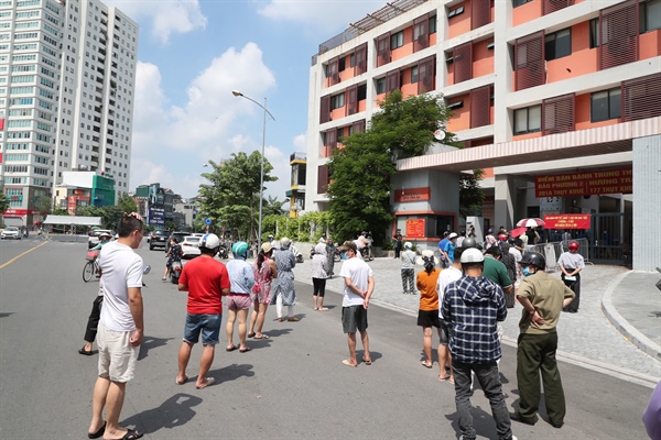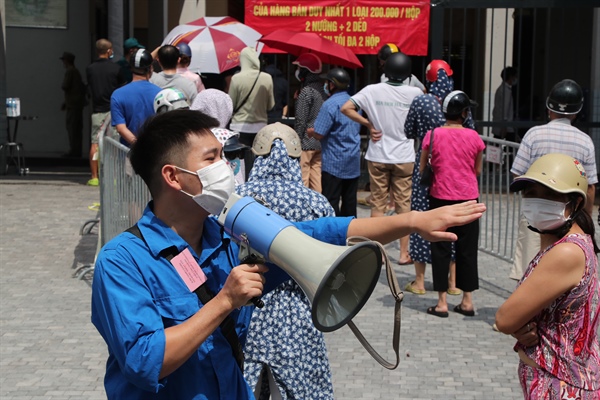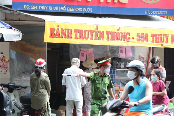 Do số lượng người mua lớn, tránh tập trung đông, để tránh tình trạng chen lấn như ngày trước đây, cửa hàng đã chuyển điểm bán sang trường Tiều học Chu Văn An cùng với sự hỗ trợ của các lực lượng chống dịch phường Thụy Khuê