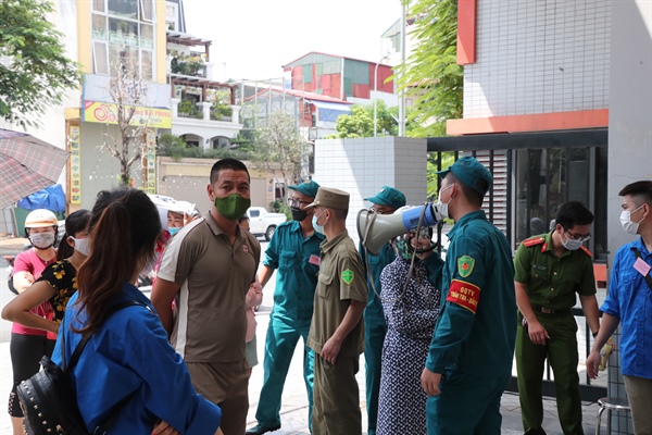 Theo ghi nhận của PV, có tới hàng trăm người dân đến mua bánh trong sáng nay nhưng không còn tình trạng túm tụm, chen lấn. Lực lượng thanh niên tình nguyện, đội dân phòng liên tục nhắc nhở người dân đứng theo hàng lối, giữ khoảng cách an toàn.