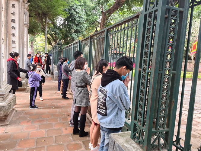 Văn Miếu Quốc Tử Giám năm nay cũng đóng cửa, không tiếp đón người dân do dịch. Đây là cơ sở thờ tự được nhiều em học sinh cùng phụ huynh đến để cầu may mỗi khi gia đình có người chuẩn bị bước vào thi cử