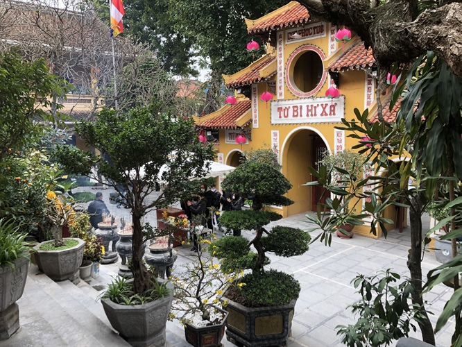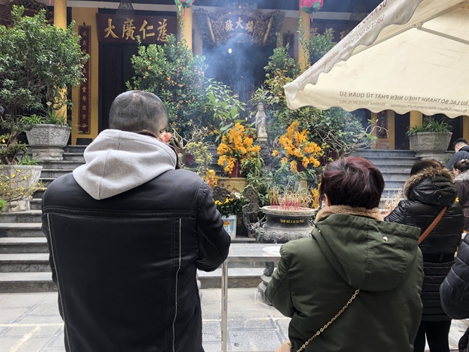 Chùa Quán Sứ tại quận Hoàn Kiếm cũng là một trong những địa điểm hiếm hoi mở cửa đón người dân dịp Tết Nhâm Dần. Ngay từ sáng sớm, khá đông người dân đã đến đây để cầu bình an. Nhà chùa cũng quy định mọi người dân khi đến phải đeo khẩu trang