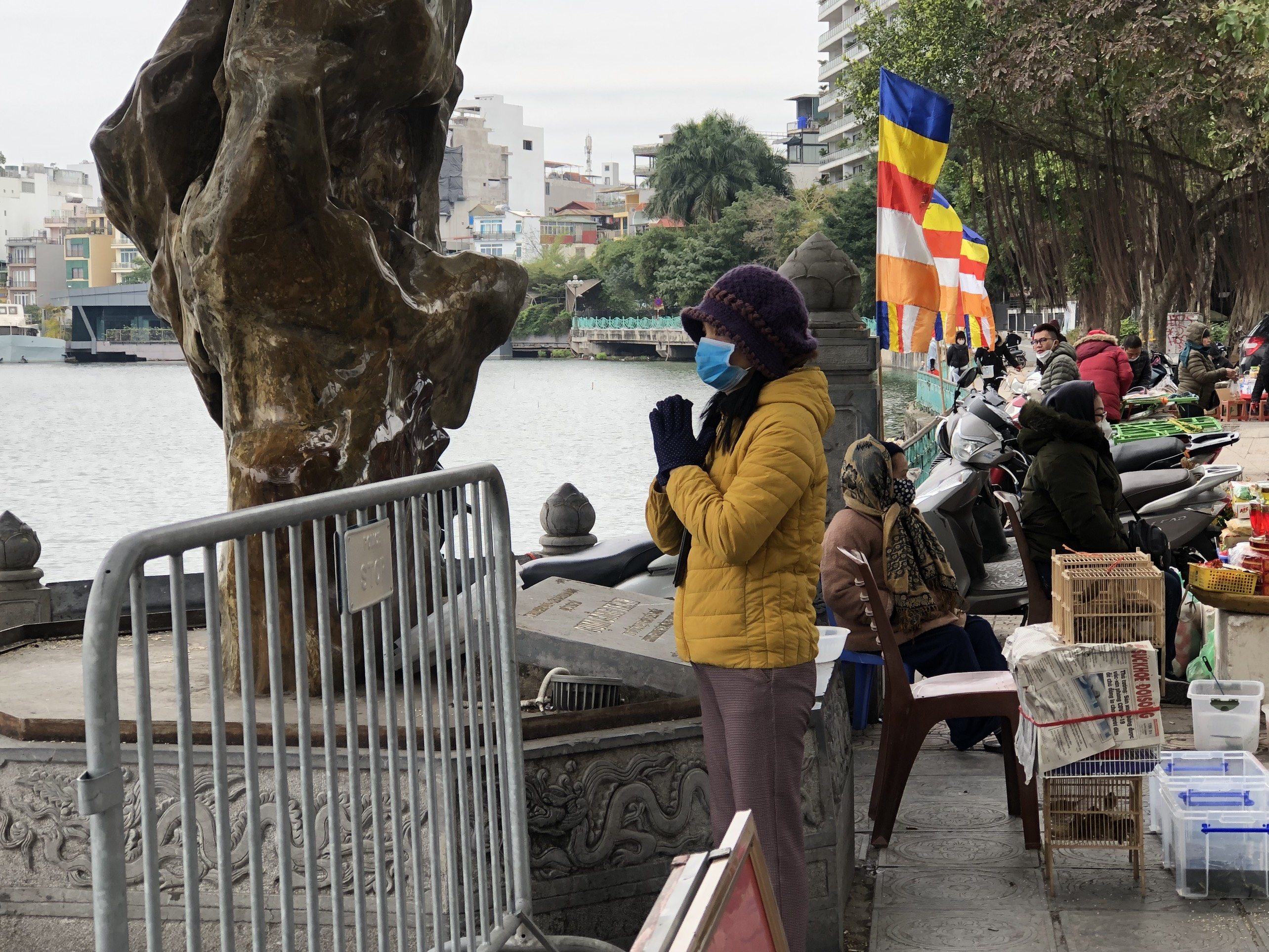 Chị Lê Mai Chi (quận Hoàng Mai) cho biết: “Vì mấy nay bận việc gia đình, tôi không cập nhật được thông tin chùa Trấn Quốc đóng cửa, không đón khách vào dịp Tết. Khi đến cũng khá ngạc nhiên nhưng đành vì là quy định chống dịch”.