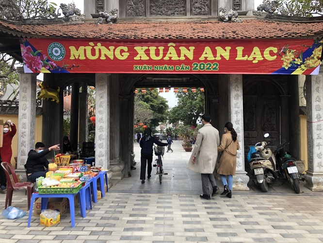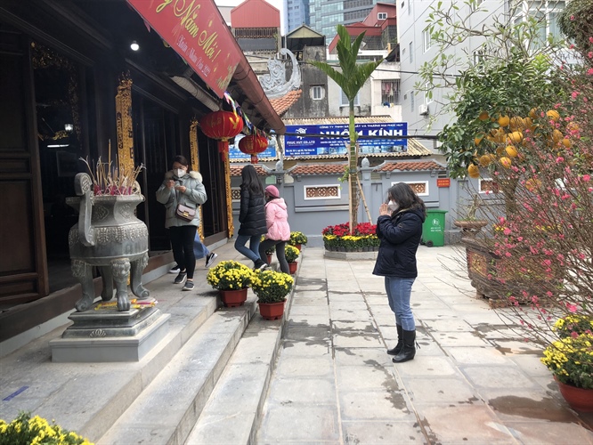 Trái ngược lại, chùa Hà trên địa bàn quận Cầu Giấy đã mở cửa từ mồng 2 đón du khách. Du khách khi vào cửa sẽ được đo thân nhiệt, rửa tay sát khuẩn