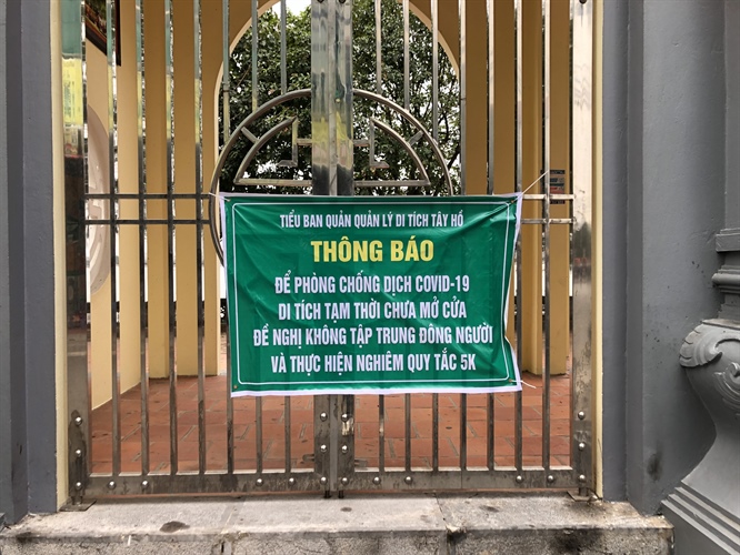 Thông báo dừng mở cửa được ban quản lý Phủ Tây Hồ treo trước cổng