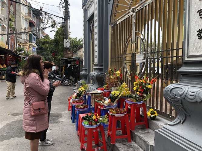 Chị Trần Thanh Thảo (quận Ba Đình) chia sẻ, người dân muốn dâng sớ hoặc giot dầu sẽ nhờ người trong ban quản lý đền Quán Thánh mà không được phép đi vào khuôn viên