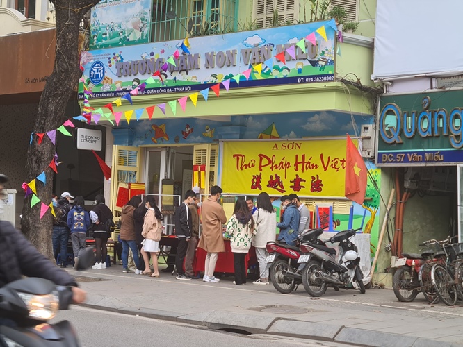 Do không được mở cửa, nhiều ông đồ phải cho chữ bên ngoài khuôn viên Văn Miếu Quốc Tử Giám