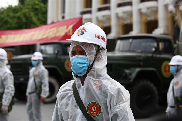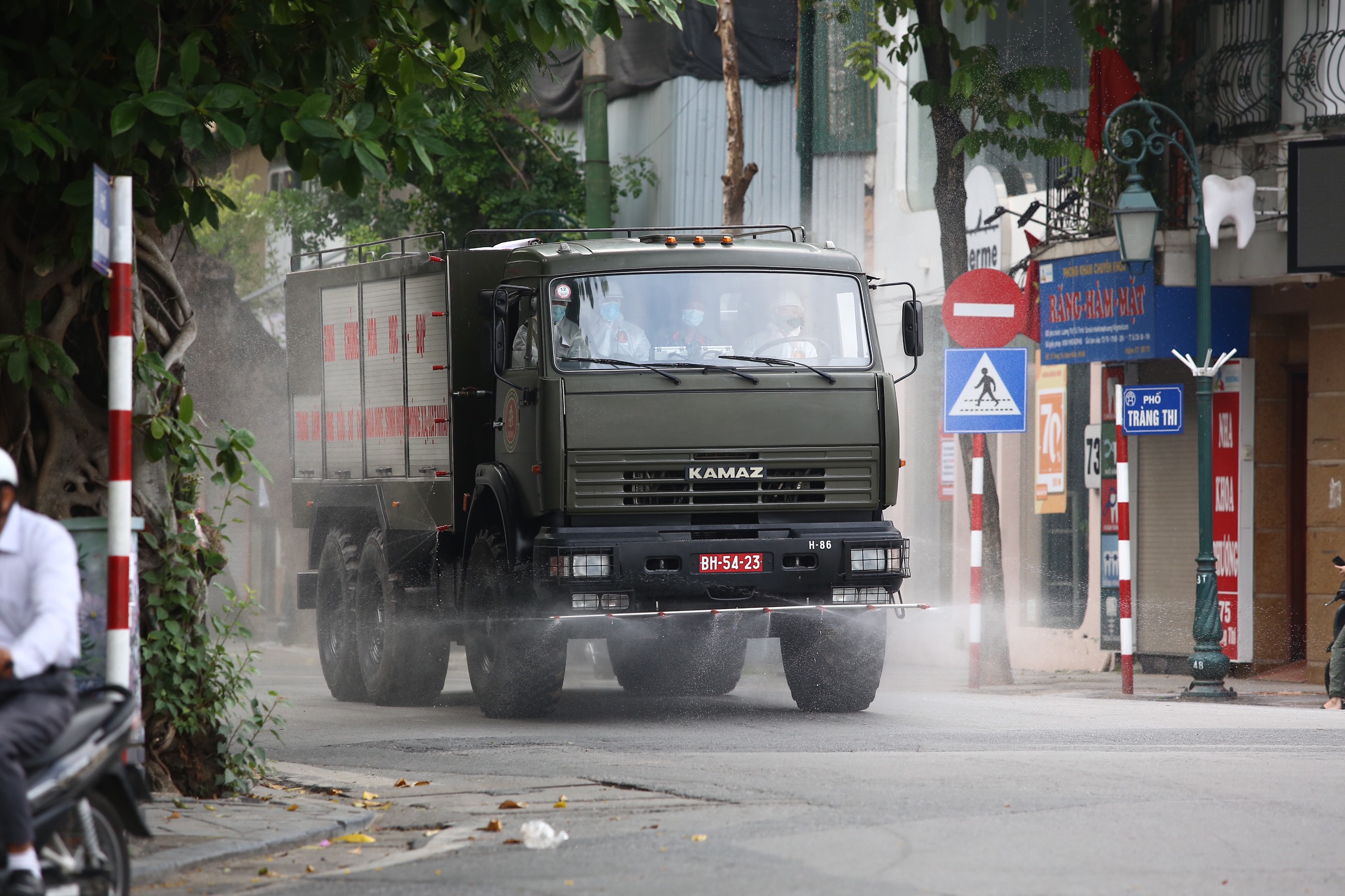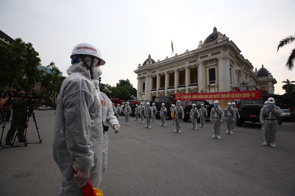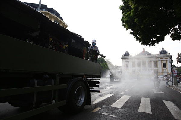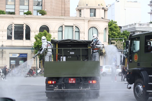 8h sáng, đoàn xe phun khử khuẩn Bộ Tư lệnh Thủ đô và Binh chủng hoá học xuất phát và phun quanh hồ Gươm một vòng. Sau đó, tổ chức phun khử khuẩn trên địa bàn 10 phường phố cổ, 2 phường ngoài đê, các tuyến phố Lý Thường Kiệt, Hai Bà Trưng, Trần Hưng Đạo. Thời gian phun khử khuẩn diễn ra cả ngày 26.7.