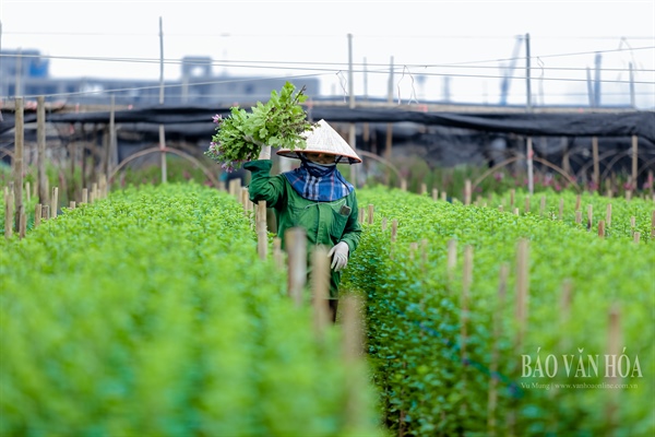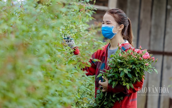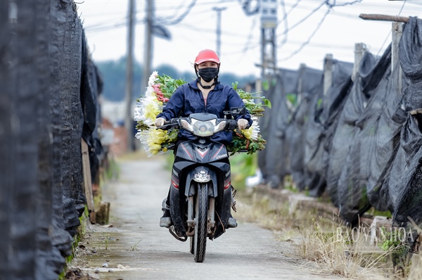 Cánh đồng hoa nhộn nhịp trở lại khiến nhiều người dân làng Tây Tựu phấn khởi. Mọi người đều mong dịch Covid-19 sẽ không bùng phát để yên tâm làm vụ hoa Tết.