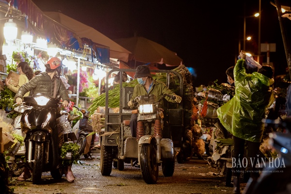 Người vận chuyển, người xếp hoa, bày bán, không khí chợ hoa đêm lớn nhất Hà Nội càng về khuya càng nhộn nhịp.