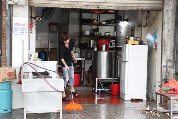 Tại nhiều cửa hàng, nhân viên phải dọn dẹp hết công suất để kịp 12h mở cửa trở lại, các đồ dùng được rửa sạch sẽ
