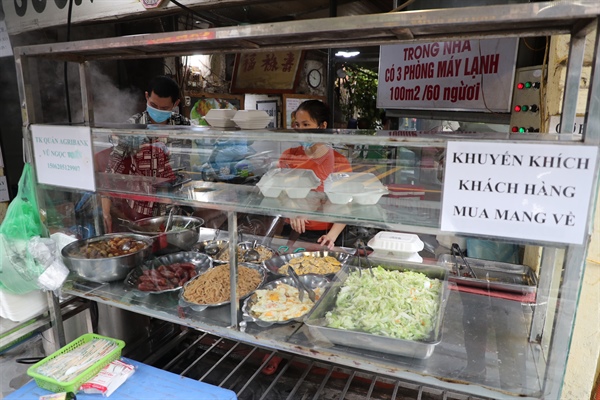 Một cơ sở kinh doanh dịch vụ ăn uống để biển chỉ bán hàng mang về