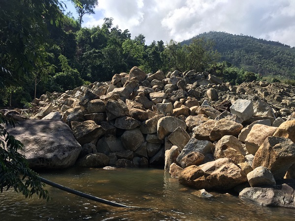 Dòng suối bị hàng trăm m3 đất đá chặn lại