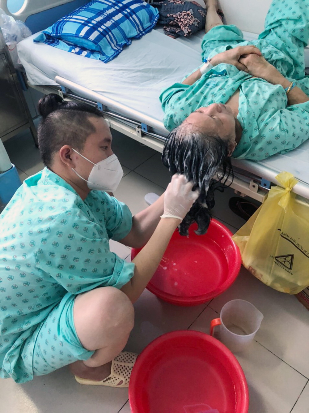 Công việc hằng ngày của Trường tại Khoa nhiễm I là lau dọn phòng bệnh, thay ga giường, hỗ trợ bệnh nhân gội đầu, thay đồ, hỗ trợ ăn uống… Dẫu lúc đầu còn lúng túng nhưng rồi cũng quen dần và thành thạo các động tác, bất kể thời gian ngày hay đêm, hơn hai tháng nay, Trường như một “điều dưỡng” viên đặc biệt, tận tình lao vào hỗ trợ chăm sóc cho những bệnh nhân không thể tự sinh hoạt cá nhân mà không chút đắn đo hay suy nghĩ lo sợ, xem các bệnh nhân như chính những người thân của mình. Anh Trường tâm sự, nhìn các bệnh nhân không thể tự chăm sóc sinh hoạt cá nhân, anh không cầm được lòng, nhất là những bệnh nhân lớn tuổi, già yếu. Với sức trẻ và may mắn vượt qua cửa tử, anh không ngại giúp đỡ các F0 bất cứ việc gì với mong muốn ai cũng được điều trị khỏi bệnh như mình để trở về với gia đình, nơi mà những người thân yêu đang trông ngóng họ từng ngày.