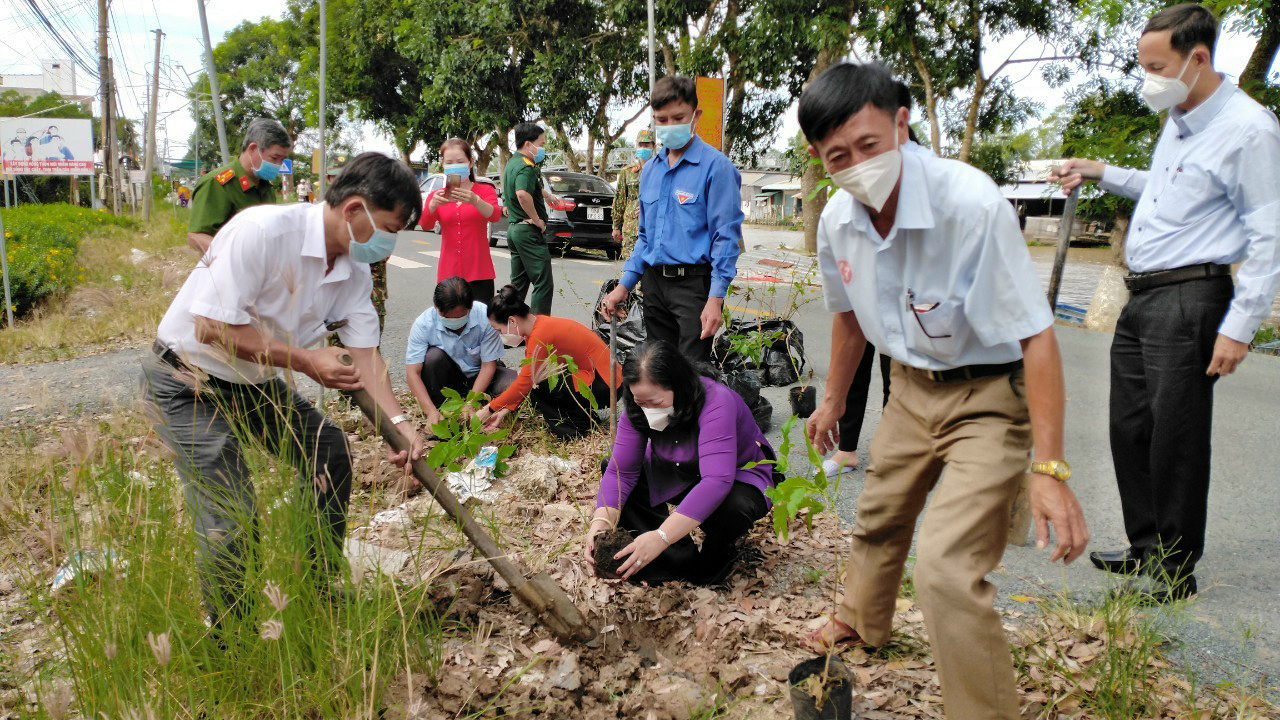 Phụ nữ huyện Giồng Riềng phối hợp cùng chồng cây trên địa bàn huyện