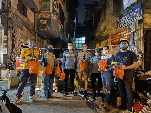 Được biết món quà ý nghĩa gồm 50 suất phở này được thực hiện bởi nhóm Phở Yêu Thương tại số 68 phố Đê La Thành nhỏ. Nói về việc trao tặng những suất phở yêu thương tới các công nhân vệ sinh môi trường, chị Anh Bùi, đại diện của nhóm của nhóm chia sẻ: “Đại dịch Covid-19 bùng phát, không chỉ có các y bác sĩ hay những chiến sĩ gác chốt biên cương mới là những người trên tuyến đầu chống dịch. Trong số những người quả cảm ấy còn có cả đội ngũ công nhân làm nhiệm vụ vệ sinh môi trường. Cảm mến sự vất vả và hy sinh thầm lặng của họ, cả nhóm đã cùng nhau làm những suất phở để trao tặng tới những người ngày đêm giữ sạch phố phường”.