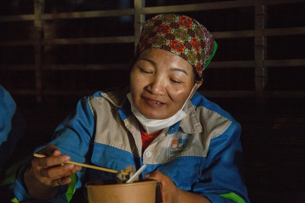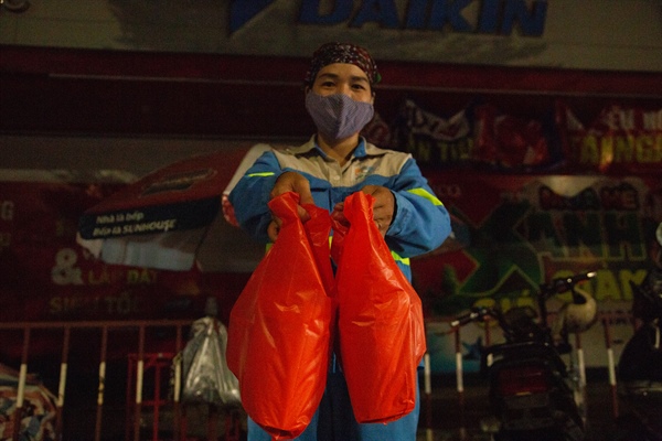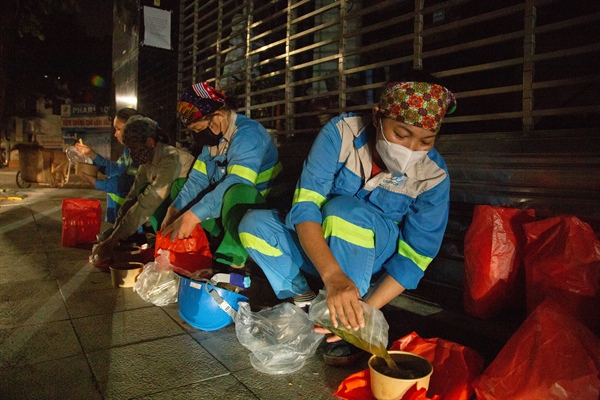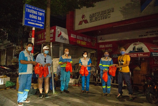 Đón nhận suất phở yêu thương khi vừa đẩy xong rác lên xe cẩu, chị Lù Thị Nhàn công nhân thuộc Tổ 4 làm nhiệm vụ trên phố Khâm Thiên tâm sự: “Xúc động và không biết nói gì hơn. Những suất cơm miễn phí, những món quà tuy không lớn, nhưng đã gửi gắm nhiều tình cảm, sự động viên đối với những người lao công của thành phố. Những hành động nhân văn này khiến cuộc sống trở nên tốt đẹp và có ý nghĩa hơn”.