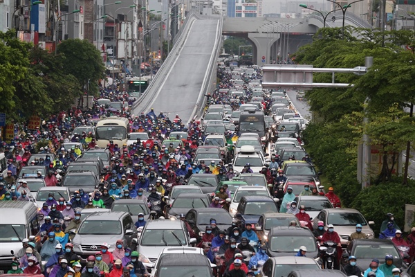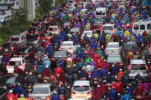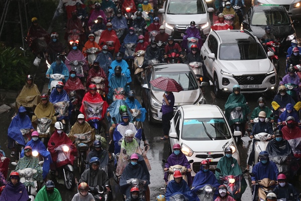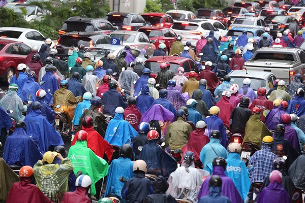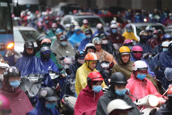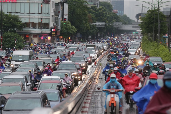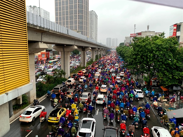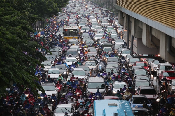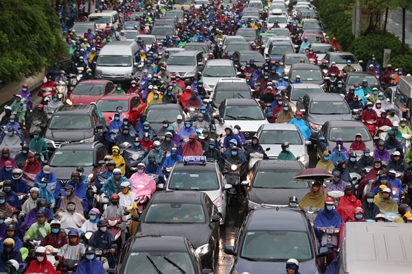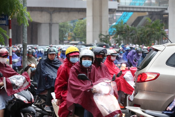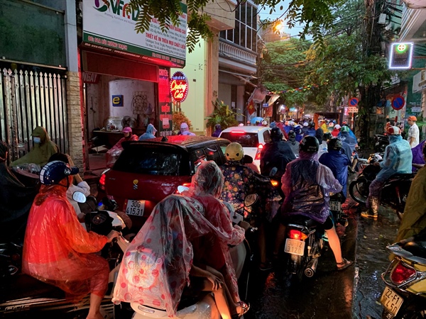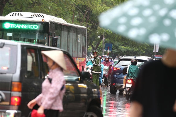 Mưa lớn gây ùn tắc trên nhiều tuyến đường, phố Hà Nội