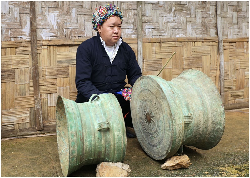 Lễ cúng tổ tiên được bắt đầu trong tiếng trống đồng.