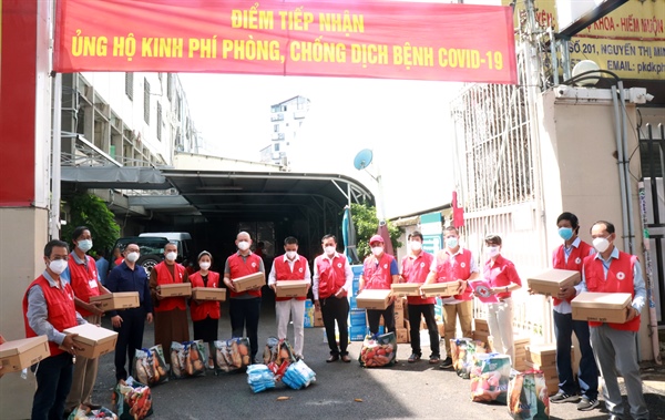 Bên cạnh đó, Hội Chữ thập đỏ TP phối hợp Hội Phật giáo người Hoa và Hội Triều Châu tại Úc trao 80 tấn gạo cho TP.Thủ Đức và 6 quận huyện, trị giá 960 triệu đồng; tặng 1.000 túi nước ép trái cây (loại 2kg/túi) đến lực lượng y bác sĩ phòng chống dịch tại Bệnh viện điều trị Covid-19 Trưng Vương, Thủ Đức, Bình Thạnh, Từ Dũ và Trung tâm y tế quận Bình Thạnh do Công ty Nichirei Suco Việt Nam tài trợ, trị giá 125 triệu đồng. Đặc biệt, chương trình thực hiện trợ giúp gia đình cháu bé sơ sinh 3 ngày tuổi từ Bệnh viện Từ Dũ về quê nhà tại tỉnh Đắk Lắk an toàn do cha mẹ đang bị cách ly tập trung vì nhiễm Covid-19; trợ giúp thai phụ cùng con nhỏ từ tỉnh Bình Dương về quê nhà tại tỉnh Đồng Tháp an toàn do chồng tử vong vì nhiễm Covid-19… Tổng kinh phí vận động trong tuần đạt gần 5,2 tỉ đồng. Tính từ tháng 1.2021 đến nay, kinh phí vận động đạt trên 65 tỉ đồng.