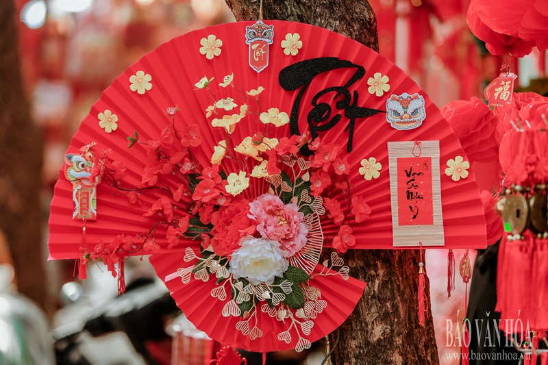 Những món đồ nhiều màu sắc với tông đỏ chủ đạo khiến cho cả dãy phố như khoác lên màu áo mới