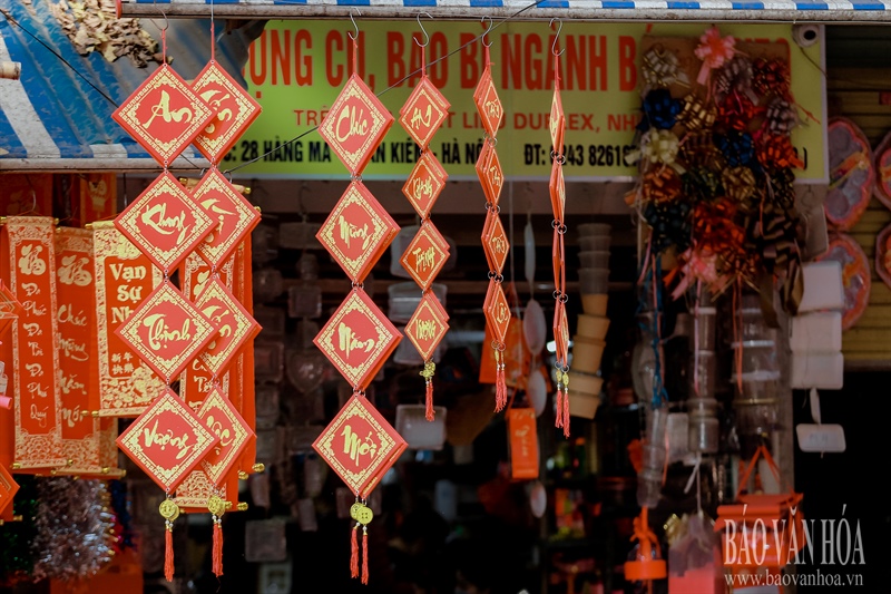 Những ngày này, con phố Hàng Mã được trang hoàng, bày bán nhiều nhất các loại mặt hàng lưu niệm, trang trí đặc trưng của ngày Tết cổ truyền