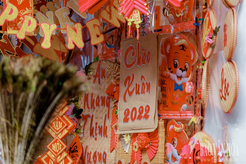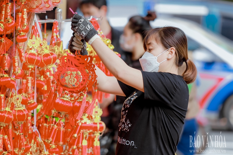 Các đồ trang trí truyền thống đã nhuộm đỏ cả một con phố, mong sự may mắn sẽ đến trong năm Nhâm Dần 2022