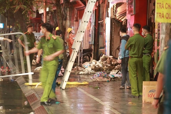 Vụ cháy ở phố Tôn Đức Thắng sáng 4.4 khiến 4 người trong một gia đình tử vong. Ảnh N.V