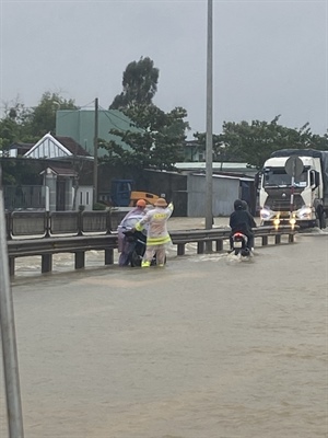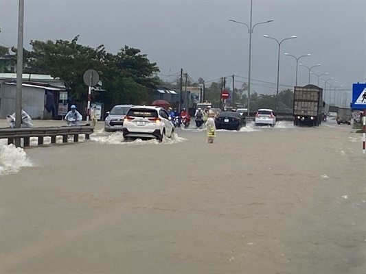 Thượng tá Nguyễn Thành Nhân , Trưởng phòng Cảnh sát giao thông (CSGT) đường bộ, đường sắt, Công an Quảng Nam cho biết, từ 6 giờ sáng nay, ngày 23.10, nhiều vị trí trên tuyến quốc lộ 1 bị ngập do ảnh hưởng của mưa lớn.