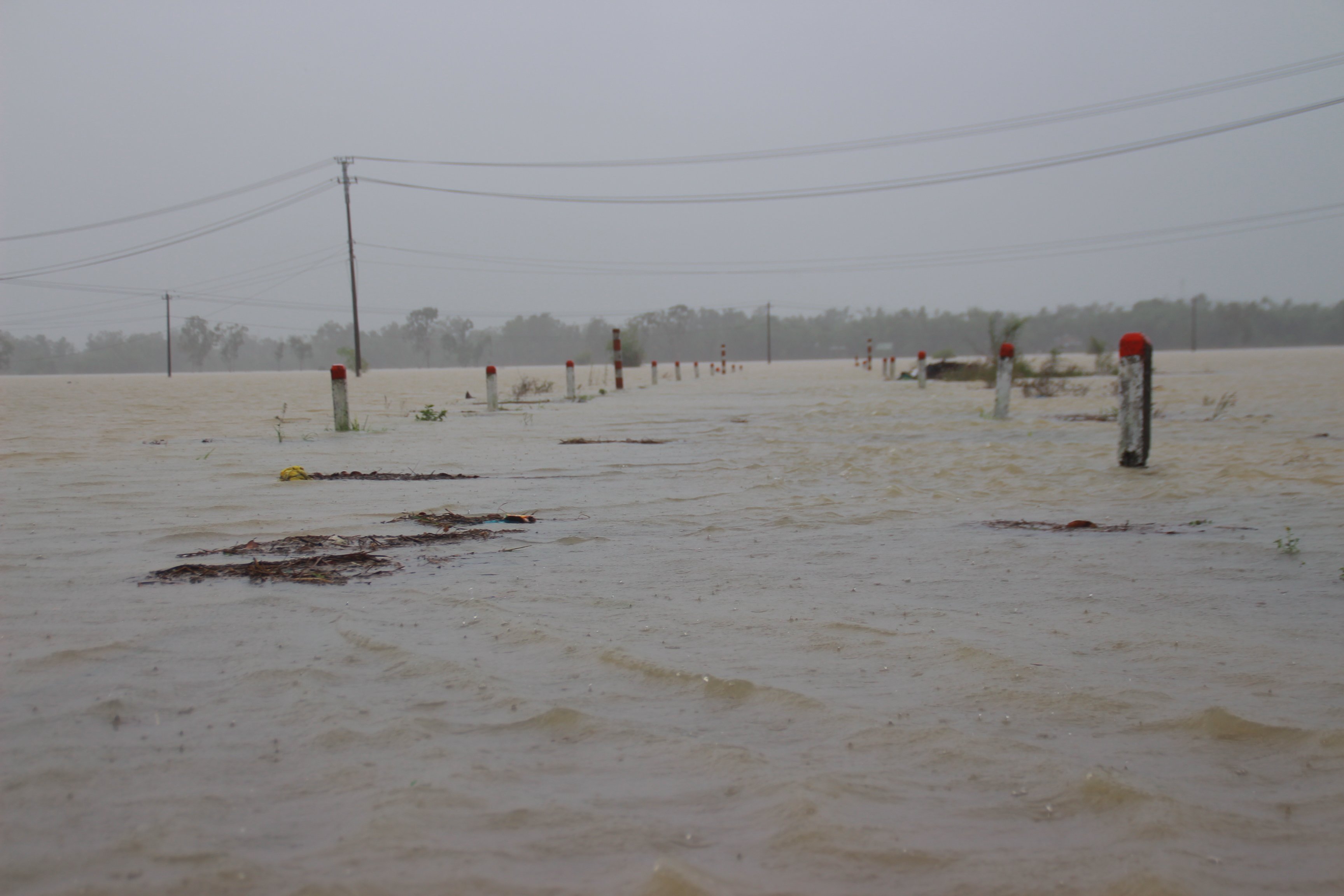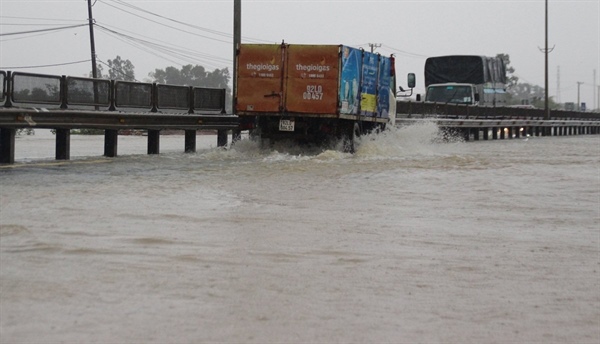 Nước dâng cao tràn qua Quốc lộ 1A qua địa phận Quảng Nam
