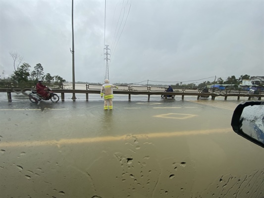Mưa lớn, nước tràn qua nhiều vị trí trên quốc lộ 1 qua địa bàn Quảng Nam