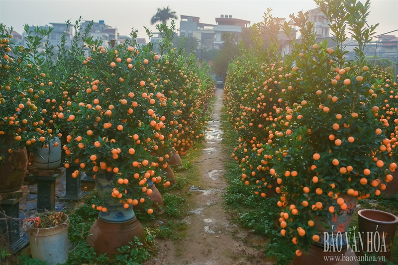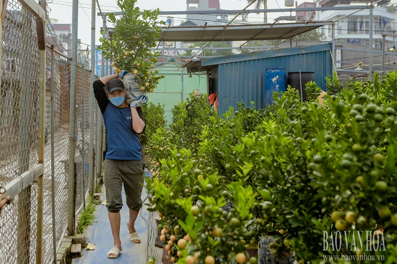Cùng với làng đào Nhật Tân, làng quất Tứ Liên (quận Tây Hồ, Hà Nội) cũng đang hối hả chuẩn bị cho vụ Tết.