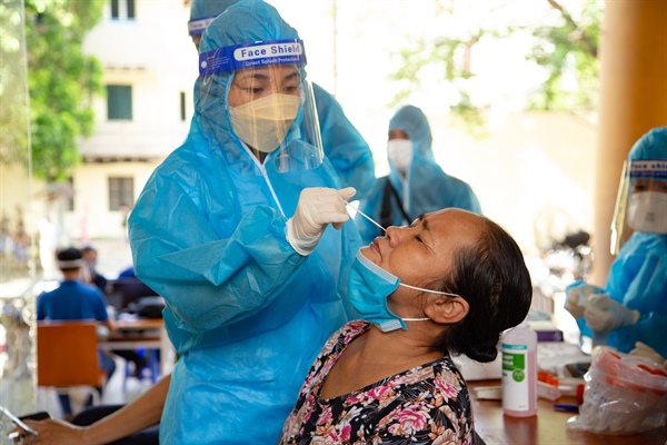 Lấy mẫu xét nghiệm cho người dân tại phường Minh Khai (Hà Nội). Ảnh : Vũ Mừng