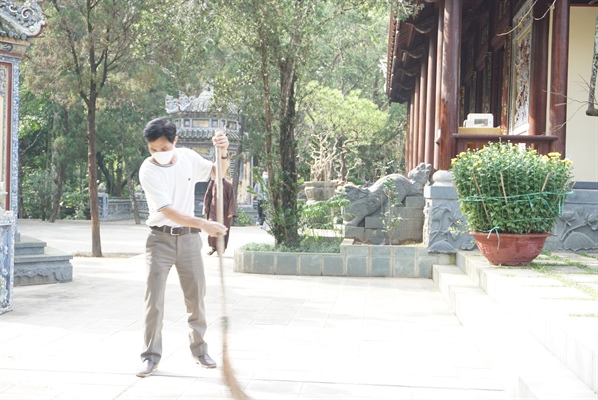 Phật tử đến Tổ đình Từ Hiếu, phụ giúp nhà chùa dọn dẹp và chuẩn bị cho tang lễ của thiền sư