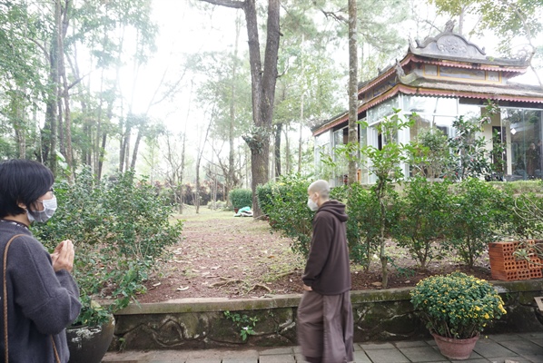 Phật tử thành kính hướng về Thất Lắng Nghe - nơi thiền sư an dưỡng và viên tịch