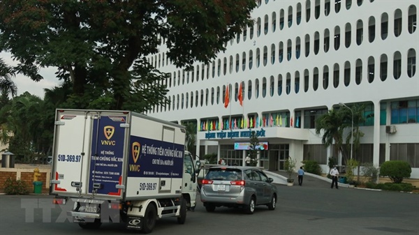 Xe chở vaccine phòng Covid-19 về Bệnh viện Bệnh Nhiệt đới Thành phố Hồ Chí Minh
