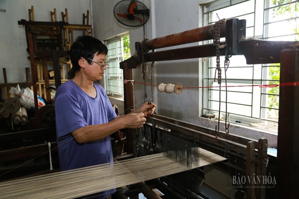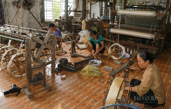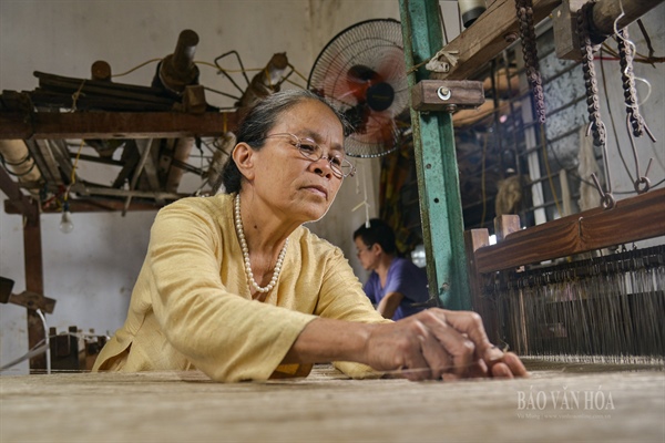 Công đoạn cuối cùng là dệt thành tấm lụa trên máy.