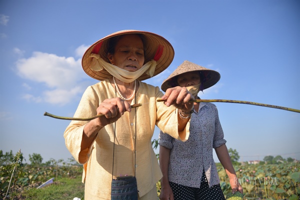 Cuống sen ở giữa thời kỳ nuôi hoa sẽ cho những sợi tơ đẹp nhất.