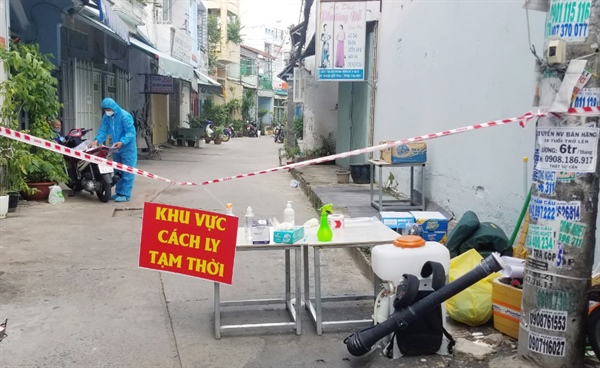 Phong tỏa con hẻm nơi bệnh nhân Covid-19 cư ngụ trên địa bàn TP.HCM. Ảnh: HCDC