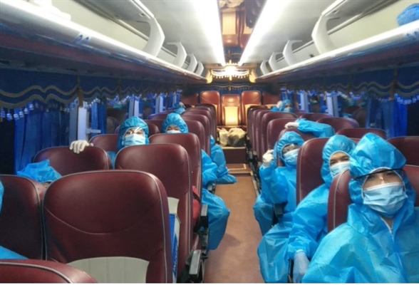 Xe khách chuyên dụng chỉ vận chuyển người bệnh Covid-19 không có triệu chứng hoặc triệu chứng nhẹ đến BV dã chiến thu dung điều trị Covid-19