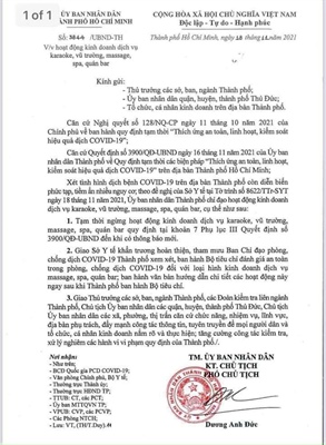 TP.HCM tiếp tục dừng hoạt động các dịch vụ karaoke, vũ trường, quán bar, massage, spa