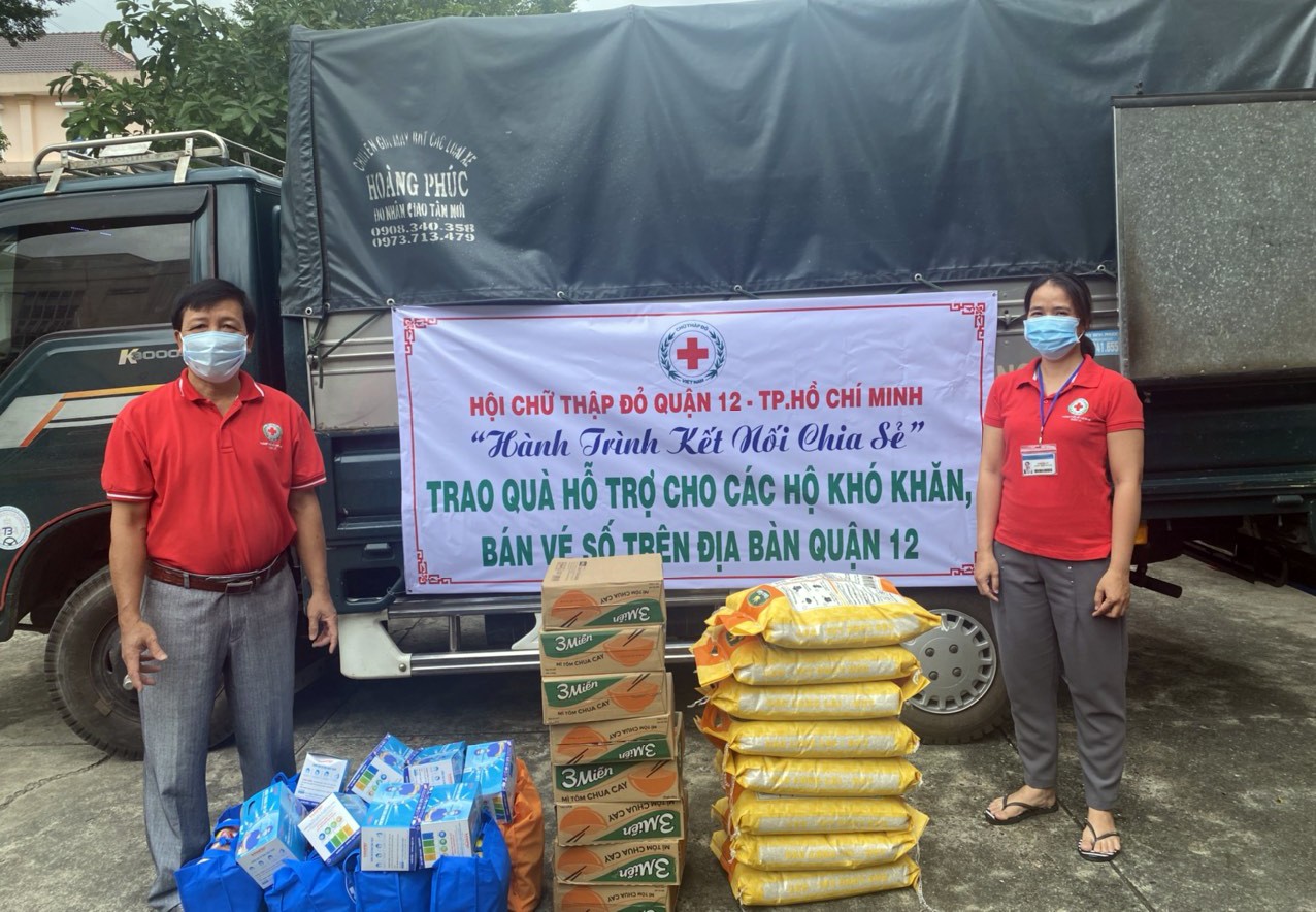 Theo đó, “Chuyến xe nghĩa tình - Chung tay đẩy lùi dịch bệnh Covid-19” thực hiện trong tuần lễ từ ngày 22-28.7, chương trình đã hỗ trợ 26 tấn nông sản đến các khu vực bị phong tỏa trên địa bàn từ nguồn hỗ trợ của Hội Chữ thập đỏ tỉnh Đắk Nông và Quảng Bình; trao tặng 2.000 suất quà đến người bán vé số hoàn cảnh khó khăn bị ảnh hưởng bởi dịch bệnh Covid-19 trên địa bàn do Công ty TNHH MTV Xổ số kiến thiết TP.HCM tài trợ (trị giá 1 tỉ đồng); hỗ trợ 13 tấn gạo và 69 thùng dầu nóng đến người dân tại các khu vực bị phong tỏa; 2 tấn gạo cho các chiến sĩ Công an, dân quân tự vệ, tình nguyện viên trực các chốt; hỗ trợ 1 tấn gạo và 4 thùng dầu nóng cho Đảng Ủy khối Dân - Chính - Đảng TP; hỗ trợ 2.940 sản phẩm dinh dưỡng đến lực lượng y bác sĩ tham gia phòng chống dịch Covid-19 Bệnh viện Từ Dũ do Công ty Sữa Việt Nam (Vinamilk); trao 100.000 khẩu trang y tế đến Bệnh viện Điều trị Covid-19 tại Bệnh viện Phạm Ngọc Thạch và Bệnh viện dã chiến thu dung điều trị Covid-19 số 2 từ nguồn tài trợ của Công ty CP Logistics Hàng không.